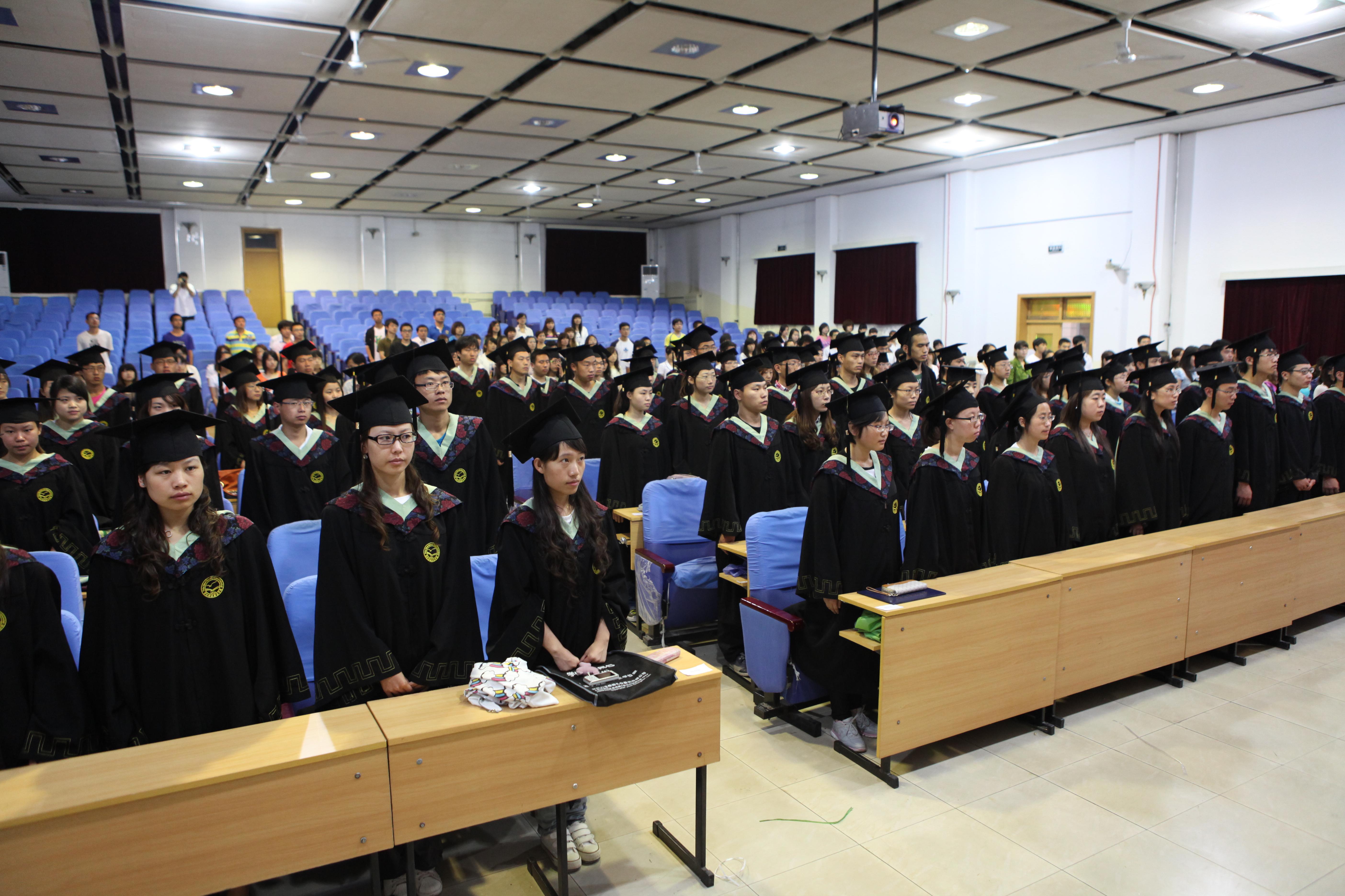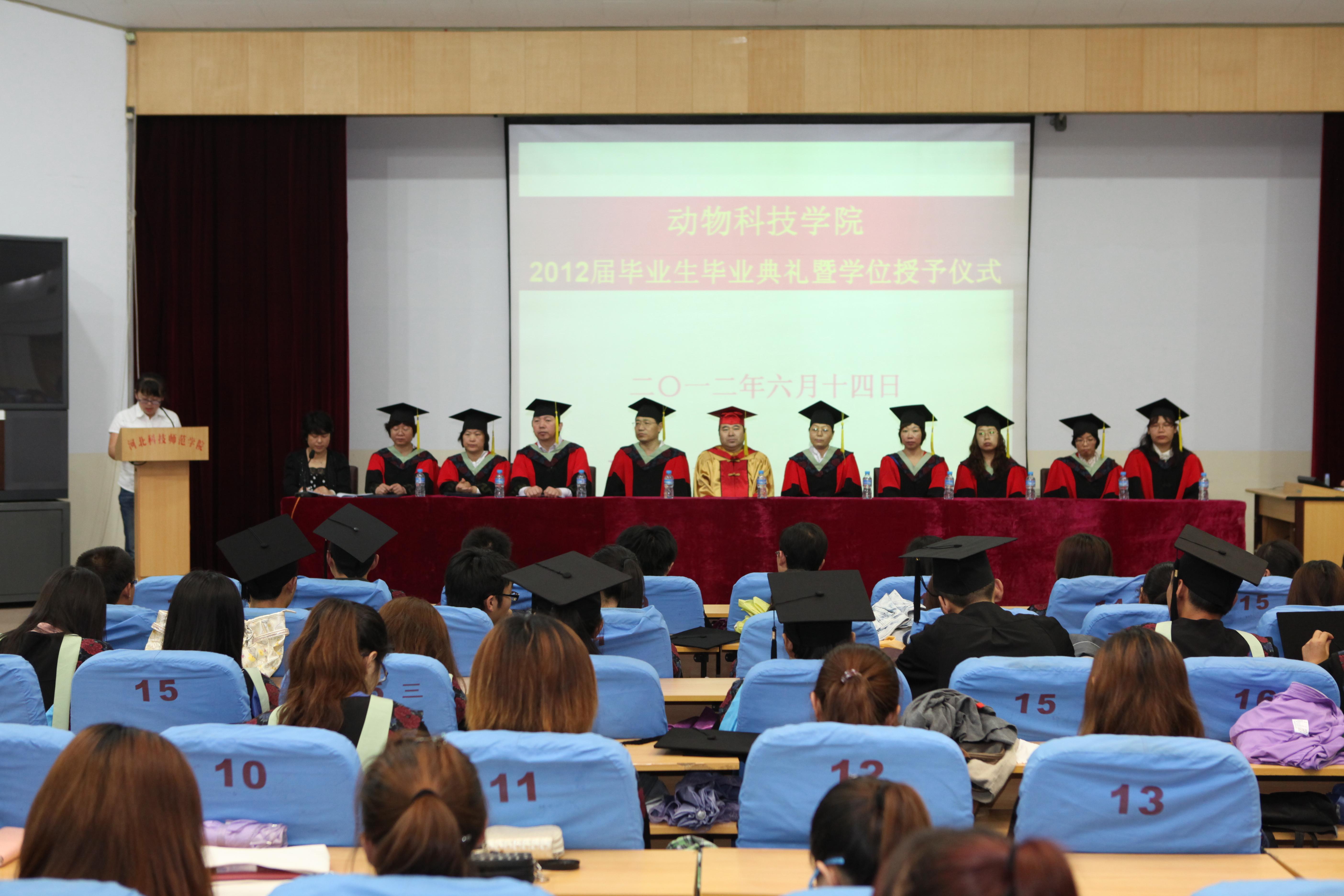 2012年6月14日上午,“beat365中国官网2012届毕业典礼暨学士学位授予仪式”在昌黎校区学术报告厅举行。beat365中国官网学位委员会主任吴建华教授、导师、任课教师出席仪式,全体毕业生身着学位服参加本次仪式。公司党委副书记王玉芬同志主持仪式。她宣读了辛彦怀董事长委托吴建华教授授予学士学位的委托书。公司党委书记段立华同志宣读了《关于授予2012届优秀毕业生的表彰决定》,副经理杨宗泽教授宣读了365亚洲体育网入口官方网站学位评定委员会《关于授予陈丹朔等229人学士学位的决定》,并代表公司向同学们表示衷心的祝贺。在神圣愉快的乐曲声中,公司学位评定委员会全体委员共同为到场的所有学士学位获得者颁发学位证书,正冠拨苏并合影留念。整个授予仪式气氛隆重而热烈,同学们怀着激动的心情,井然有序地列队登上主席台接受学位证书。
