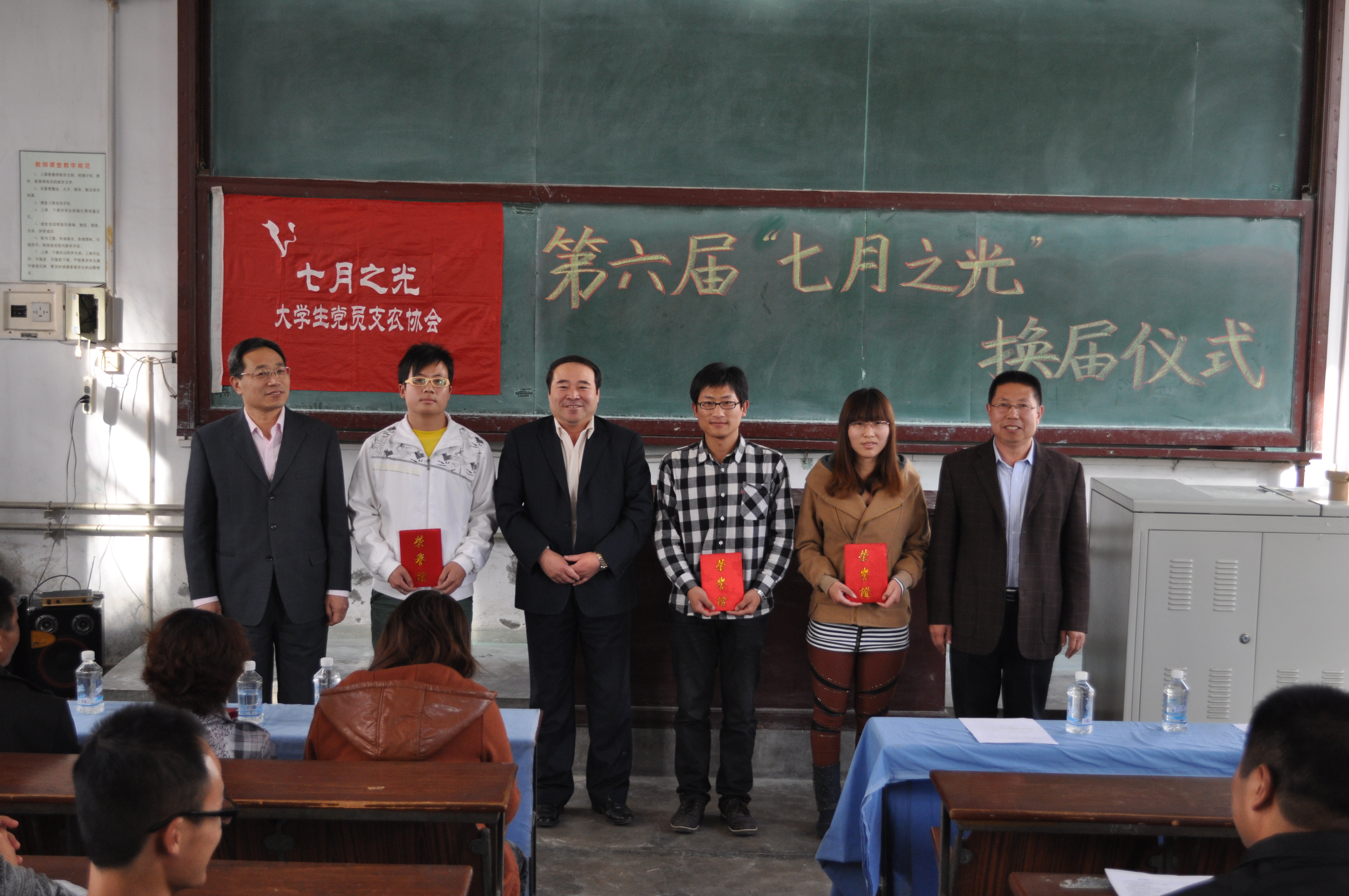 2012年10月28日,第六届“七月之光”老员工党员支农协会换届仪式在昌黎校区举行。换届仪式由“七月之光”老员工党员支农协会举办,公司党委书记段立华、经理吴建华等领导出席了本次会议。