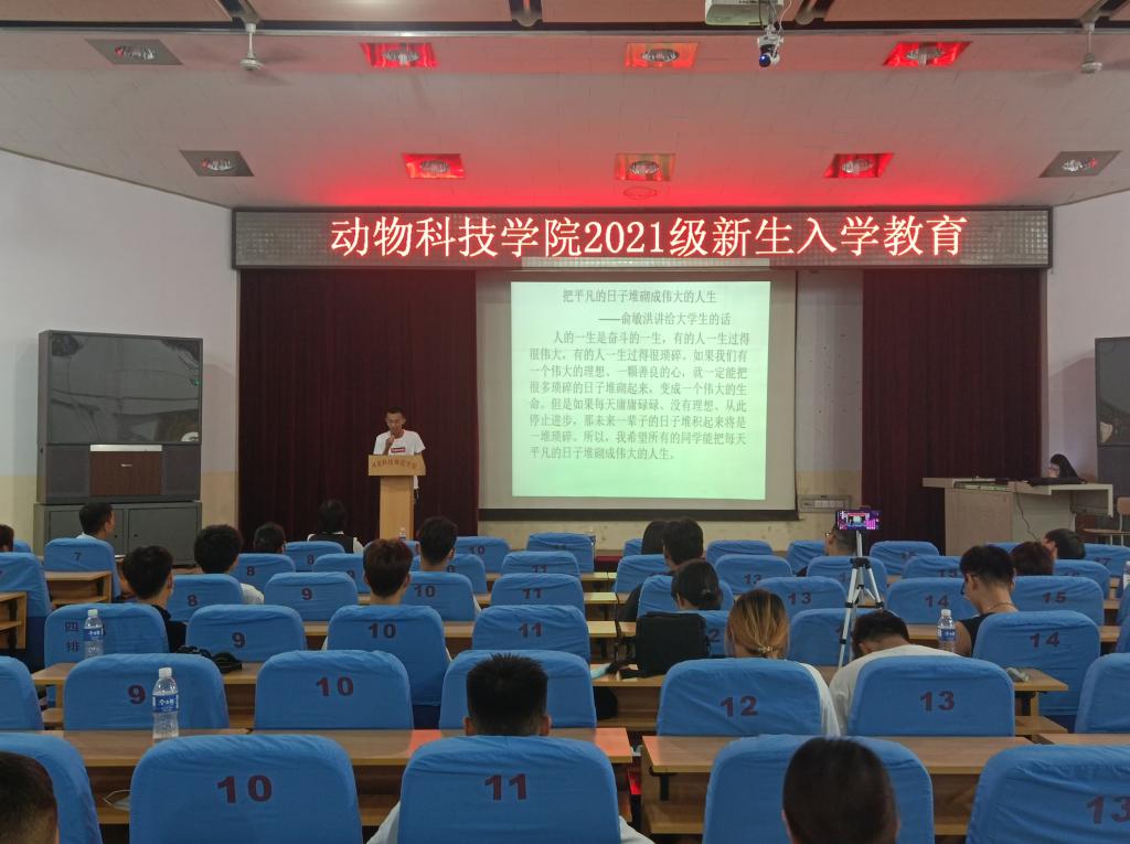 俗话说:“良好的开端是成功的一半”,为了帮助大一新生开创一个良好的开端,让他们更好地融入大学中,同时增进师生间的相互了解,动物科技公司于2021年9月12日下午2:30在学术报告厅开展新生入学教育。出席这次入学教育活动的有公司党政领导、学工办老师及2021级各班班主任们。